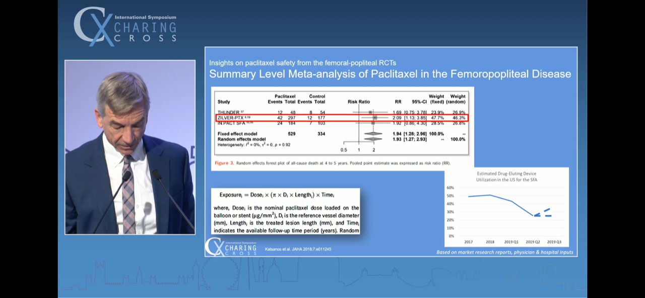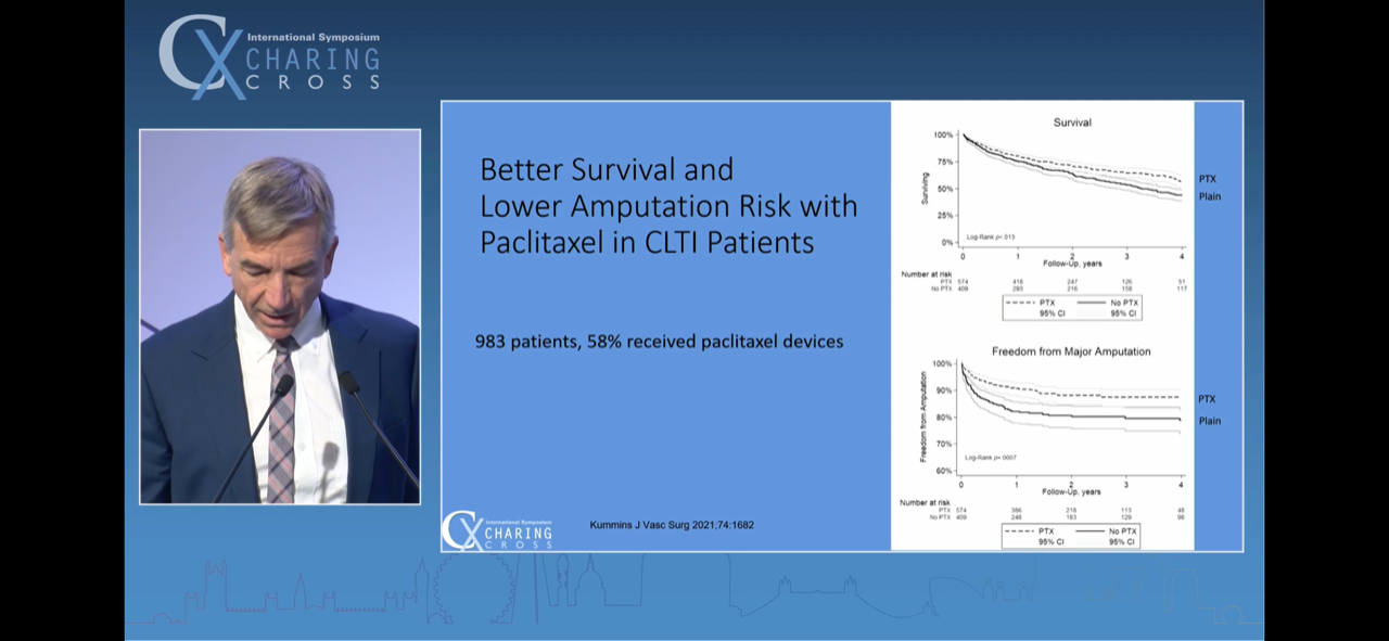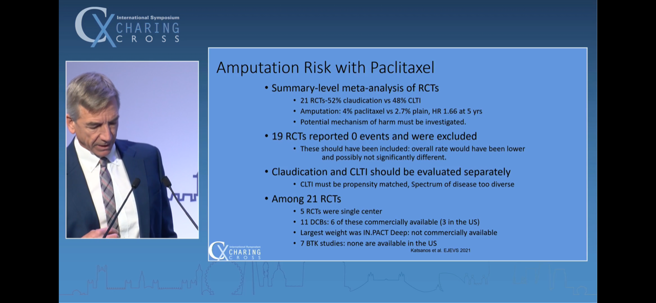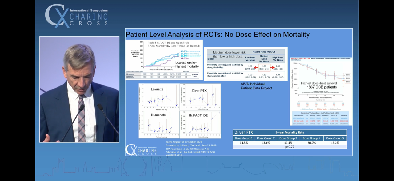 3 - All patient-level data meta-analysis, as opposed to summary-level data meta-analysis, is not reflecting a mortality spike with paclitaxel. Schneider on his penultimate slide was highly critical of and bemused by the fresh MHRA guidance that has come out in the UK in March 2022, stating that DCB shouldn't be used in claudicants, seeing as much of the data in the Katsanos trial was from IC pts.