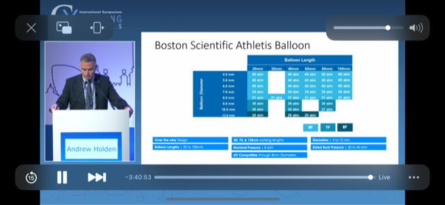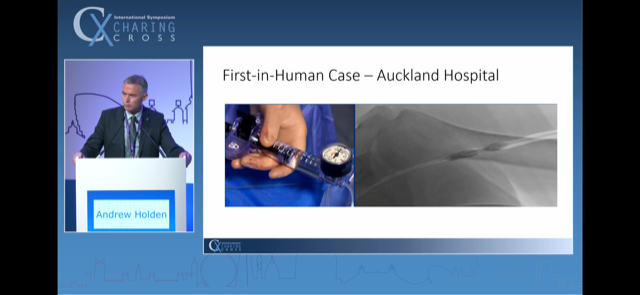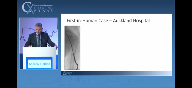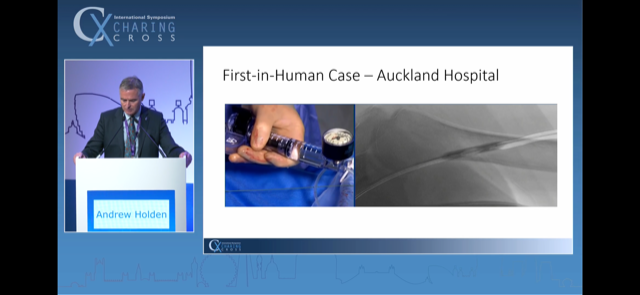 Dr Holden went on to describe the first in human case - a BCAVF that had required 30mm Hg dilatation of stenosis at the index intervention (with severe pain) and which had now recurred.