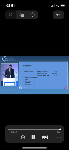 I watched 5 talks in detail. One was about pathophysiology of CV19 thrombosis. One about ALI. Three were about the impact of Covid-19 upon vascular training; 1 from Rouleaux for the UK, 1 from the ESVS by EVST and 1 from the SVS. There was nothing particularly new in the thrombosis related talks.